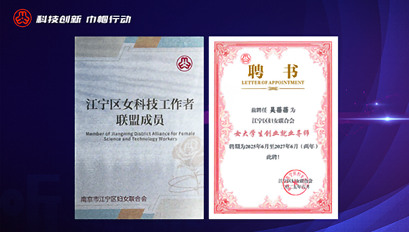 近日,“聽她說·科創(chuàng)新時代”主題宣講活動在江寧開發(fā)區(qū)舉行,我司成為江寧區(qū)女科技工作者聯(lián)盟成員。本次活動上,南京市女大學(xué)生創(chuàng)業(yè)就業(yè)“后浪計劃”也正式啟動,本計劃為助力女大學(xué)生創(chuàng)新創(chuàng)業(yè),幫助高校女大學(xué)生完成職場進階,助力女大學(xué)生做好科研發(fā)展、職業(yè)規(guī)劃,提供高質(zhì)量的就業(yè)機會。江寧區(qū)婦聯(lián)充分發(fā)揮園區(qū)企業(yè)和聯(lián)盟資源優(yōu)勢,首批征集遴選了8名優(yōu)秀女科技工作者、女企業(yè)家擔(dān)任女大學(xué)生就業(yè)導(dǎo)師,其中我司創(chuàng)始人、總經(jīng)理 吳蓓蓓 女士,受聘“江寧區(qū)女大學(xué)生創(chuàng)業(yè)就業(yè)導(dǎo)師”。